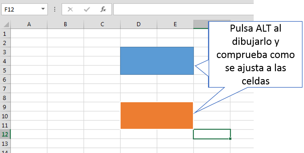 Un truco para alinear objetos a la celda, por ejemplo un cuadro de texto, es pulsar la tecla ALT al dibujarlo, comprueba que éste quedará ajustado de forma perfecta a la cuadrícula.