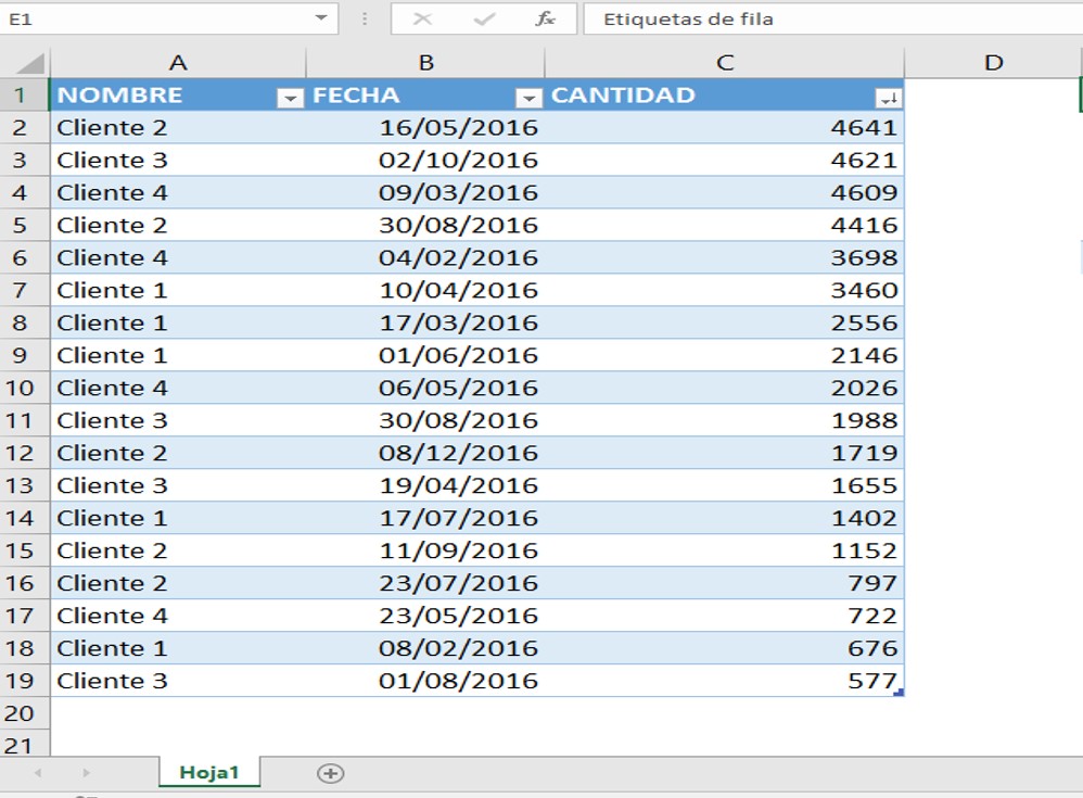 A través de Facebook y a partir de la publicación anterior sobre Vba Comparar Listados un seguidor pregunta cómo podemos conocer la última fecha o la fecha más reciente de cada cliente en un listado como el siguiente.
