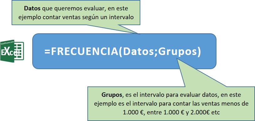 La función ESTADÍSTICA –> FRECUENCIA: calcula la frecuencia con que se repiten los valores de un rango y devuelve una matriz vertical de números.