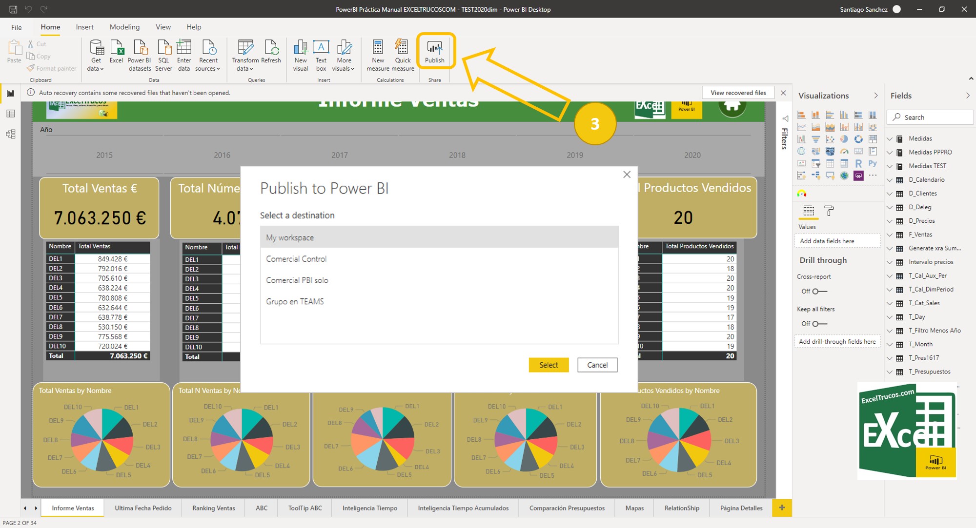 (3) Publicamos desde Power BI Desktop a la WEB Power BI Service nuestro modelo, con tablas , medidas, columnas calculadas, etc.