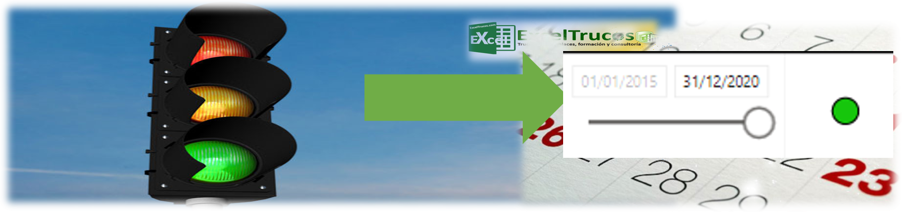 Por ejemplo, si el usuario selecciona una fecha inferior al 31/12/2016 le mostrará un semáforo rojo, para recordar que son datos antiguos. Si la fecha es inferior a 31/12/2018 semáforo amarillo y el resto semáforo verde.