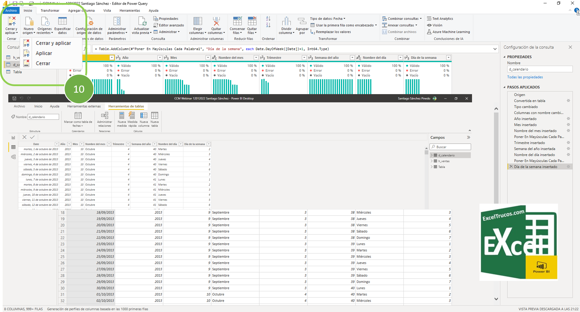 Creamos la Tabla Calendario en 10 pasos, excepto el paso 8, funciona igual en Excel y Power BI