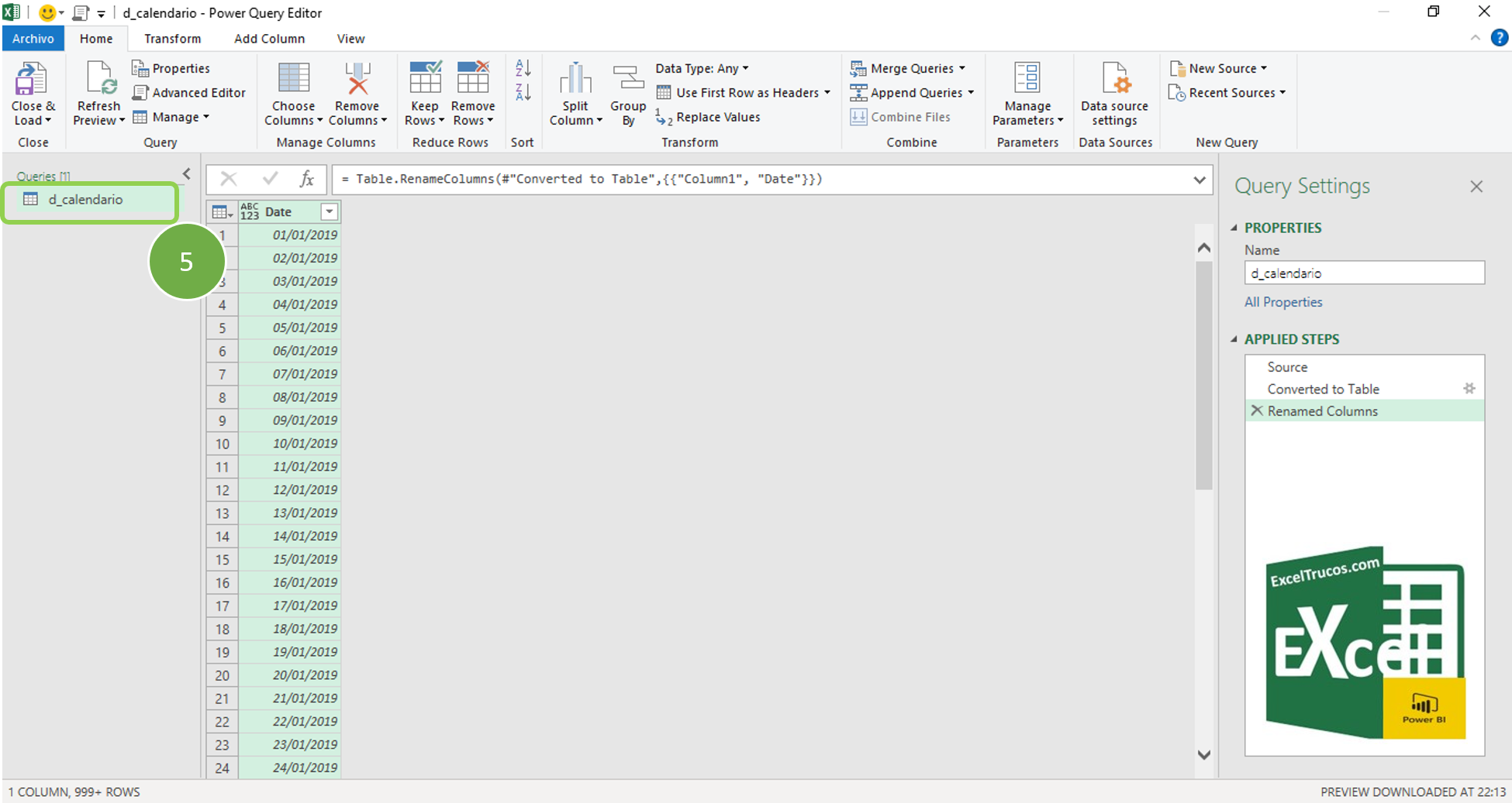 En PowerQuery haciendo doble clic en la columna o nombre de tabla cambiamos los nombres del campo y tabla (5)